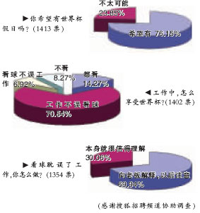对于有条件的,比如IT等能在家SOHO办公的人影响不大,可以申请在家工作。家里配有跟录设备的可以录好,等有时间再看。对于没有这些条件的朋友,我给大家支这么几招:少看比赛,看报纸上的比赛点评:大多数人看球无非也是找一乐子,找大家凑在一起的谈资。但没必要因此每场球都看,可以适当地看一两场球赛,再看看报纸,看看各大媒体的点评,也可以用RSS在网上定制相关信息。这样和别人在一起的时候不至于没话说,也不会浪费太多时间耽误了工作。